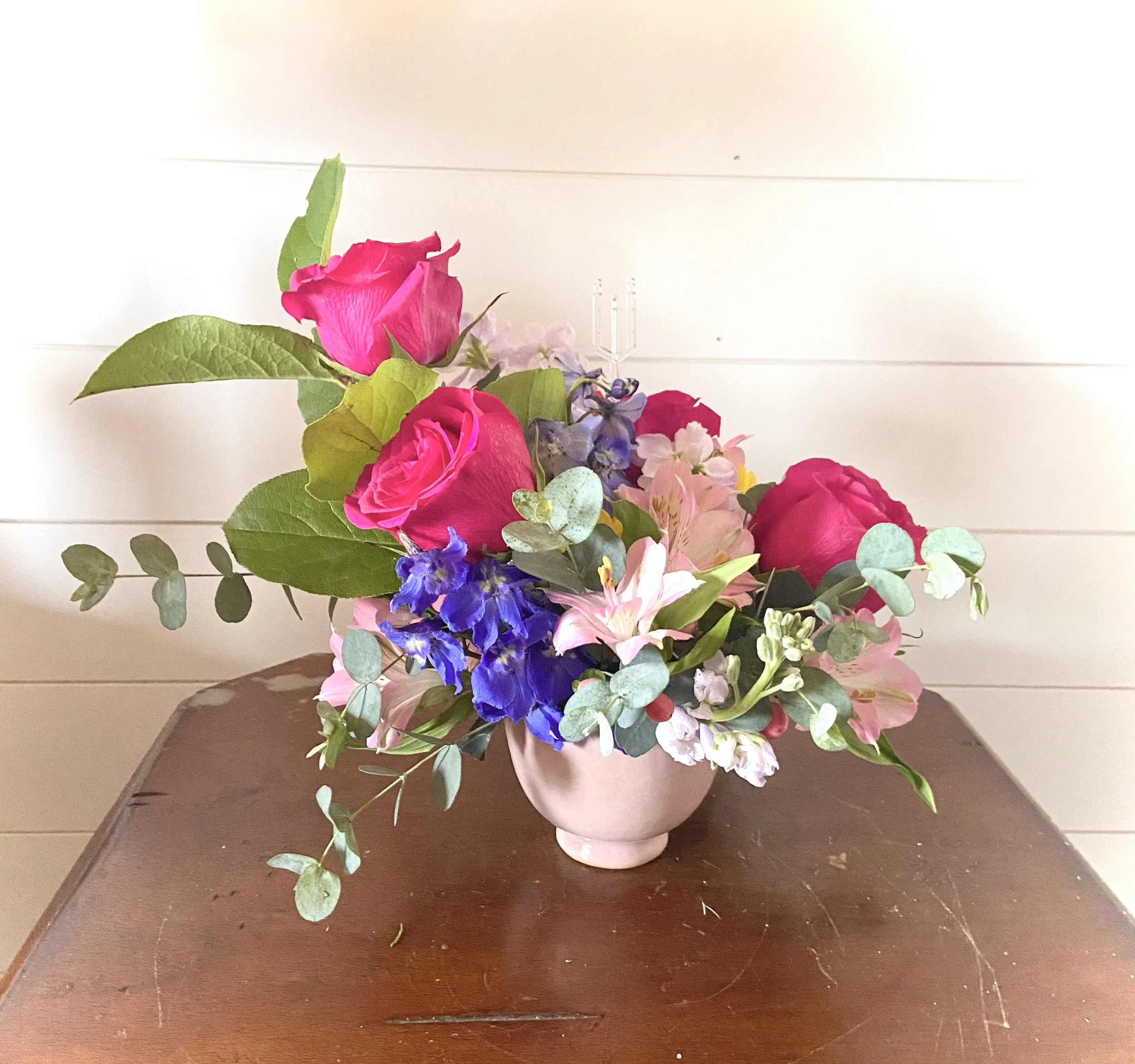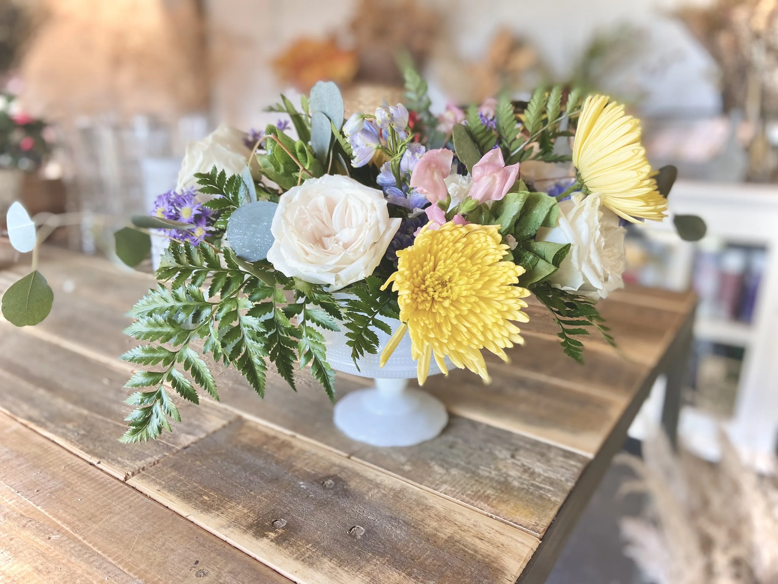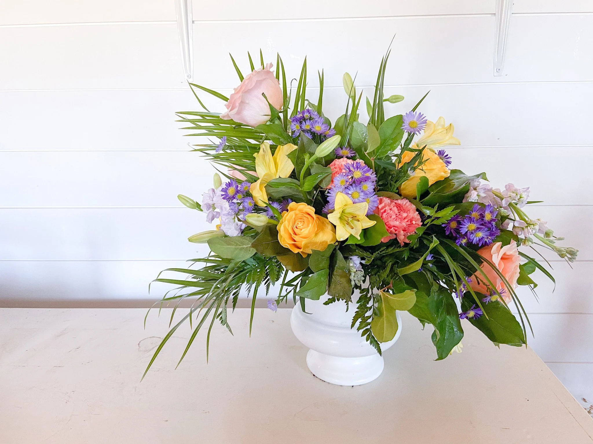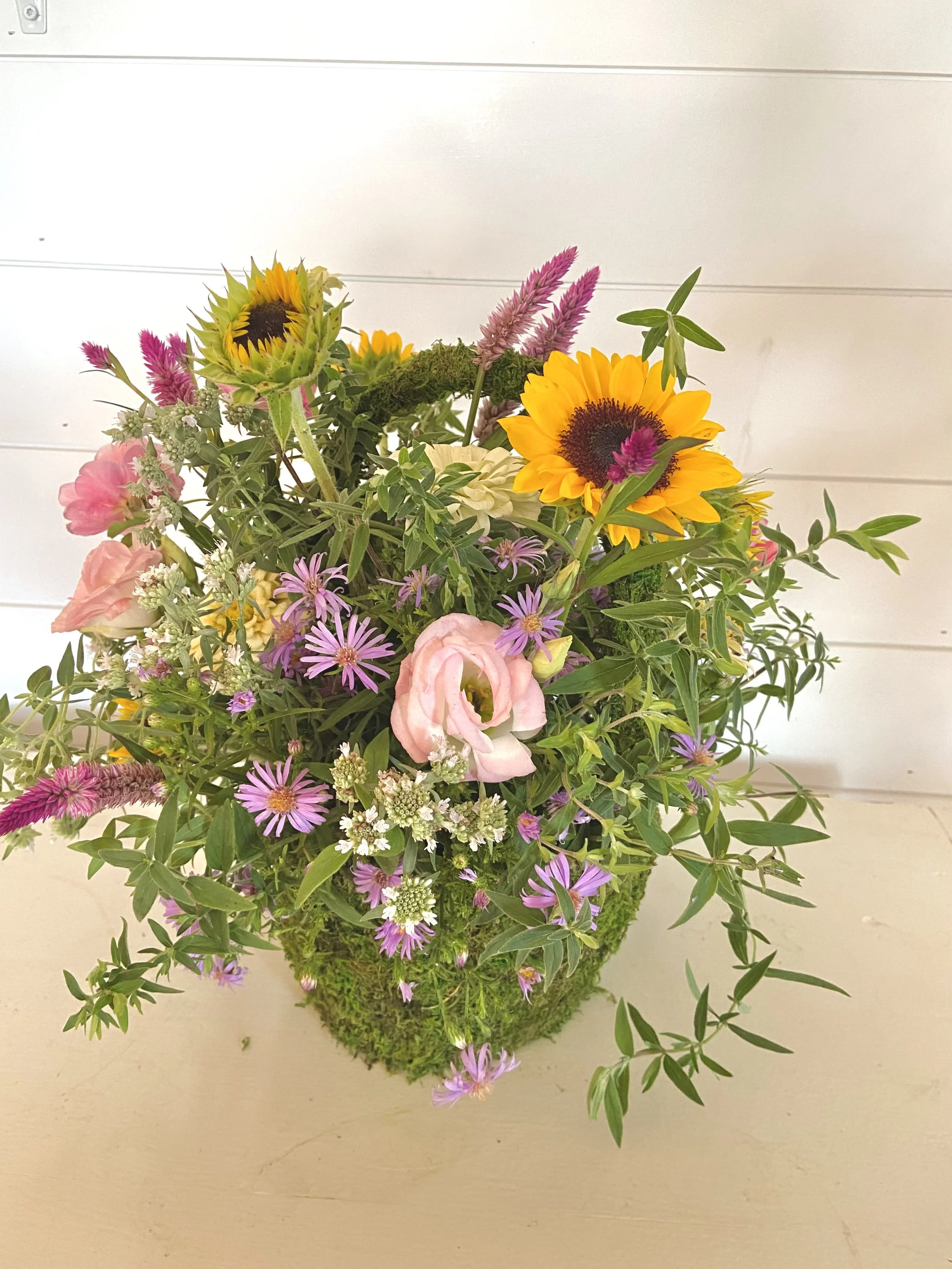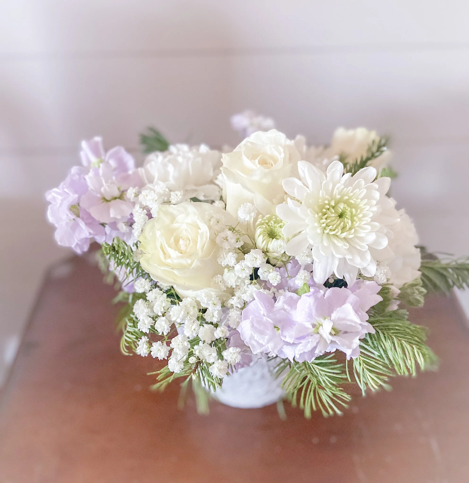 We offer a 6" small or an 8” large peace lily plant delivered in a woven basket as well as 8" medium or 10" large dish gardens with or without fresh cut flowers added. These are the gifts that keep on giving and do not require much care. The price includes delivery within a 20 mile radius from our flower shop. If you are out of that area, there will be an additional delivery fee (normally $10-$15).
