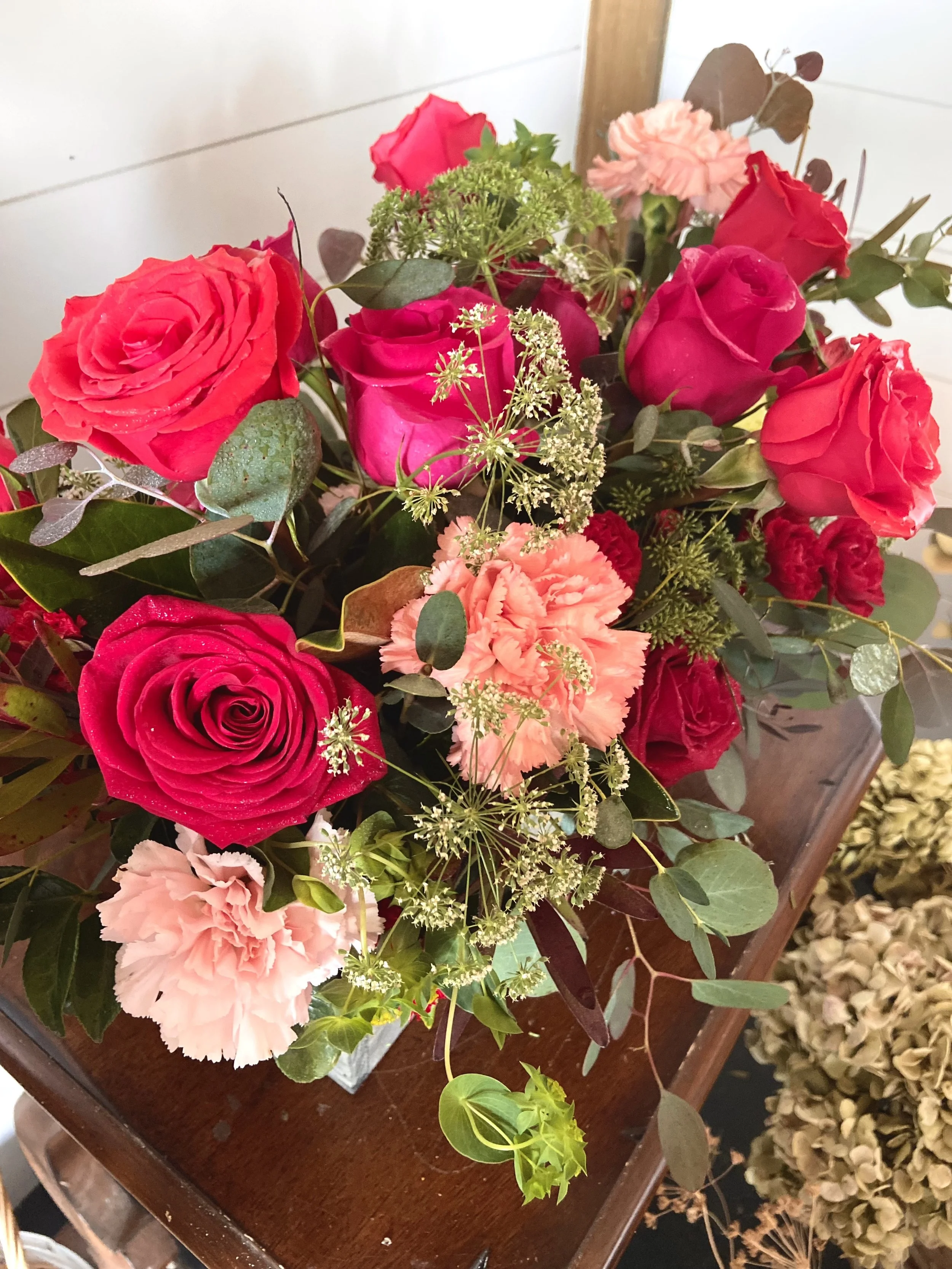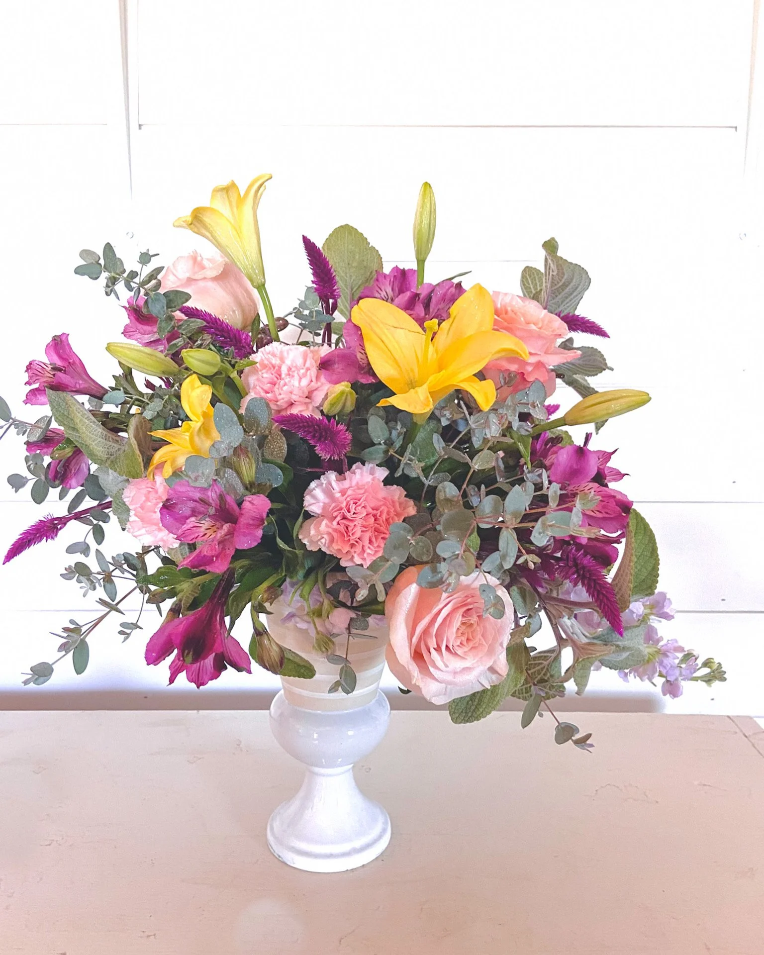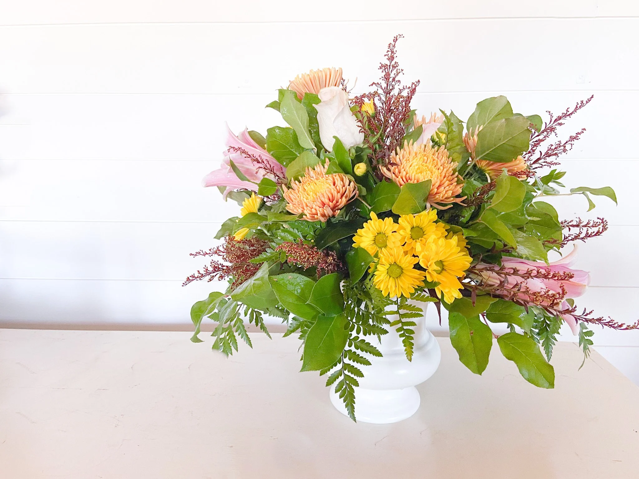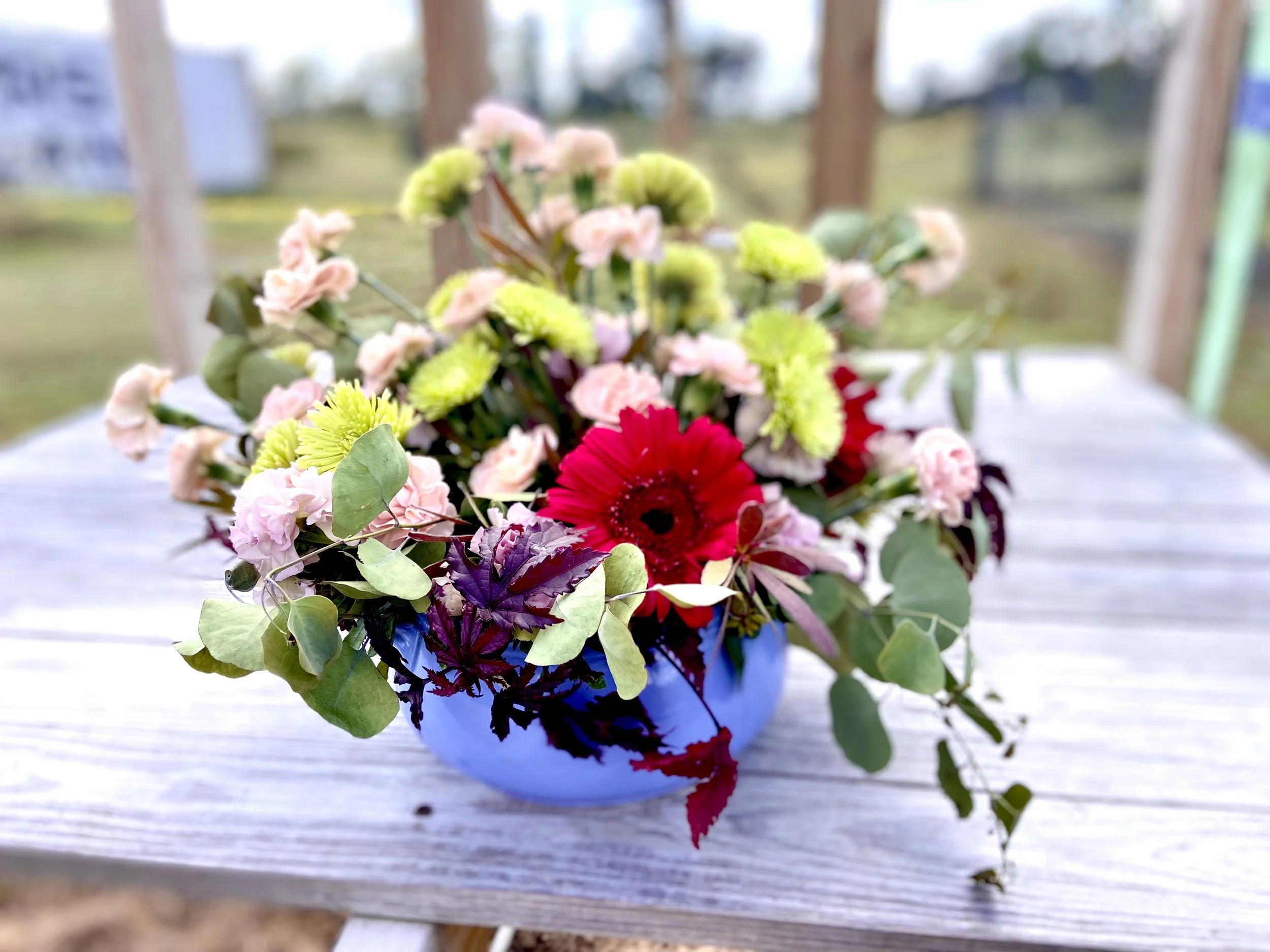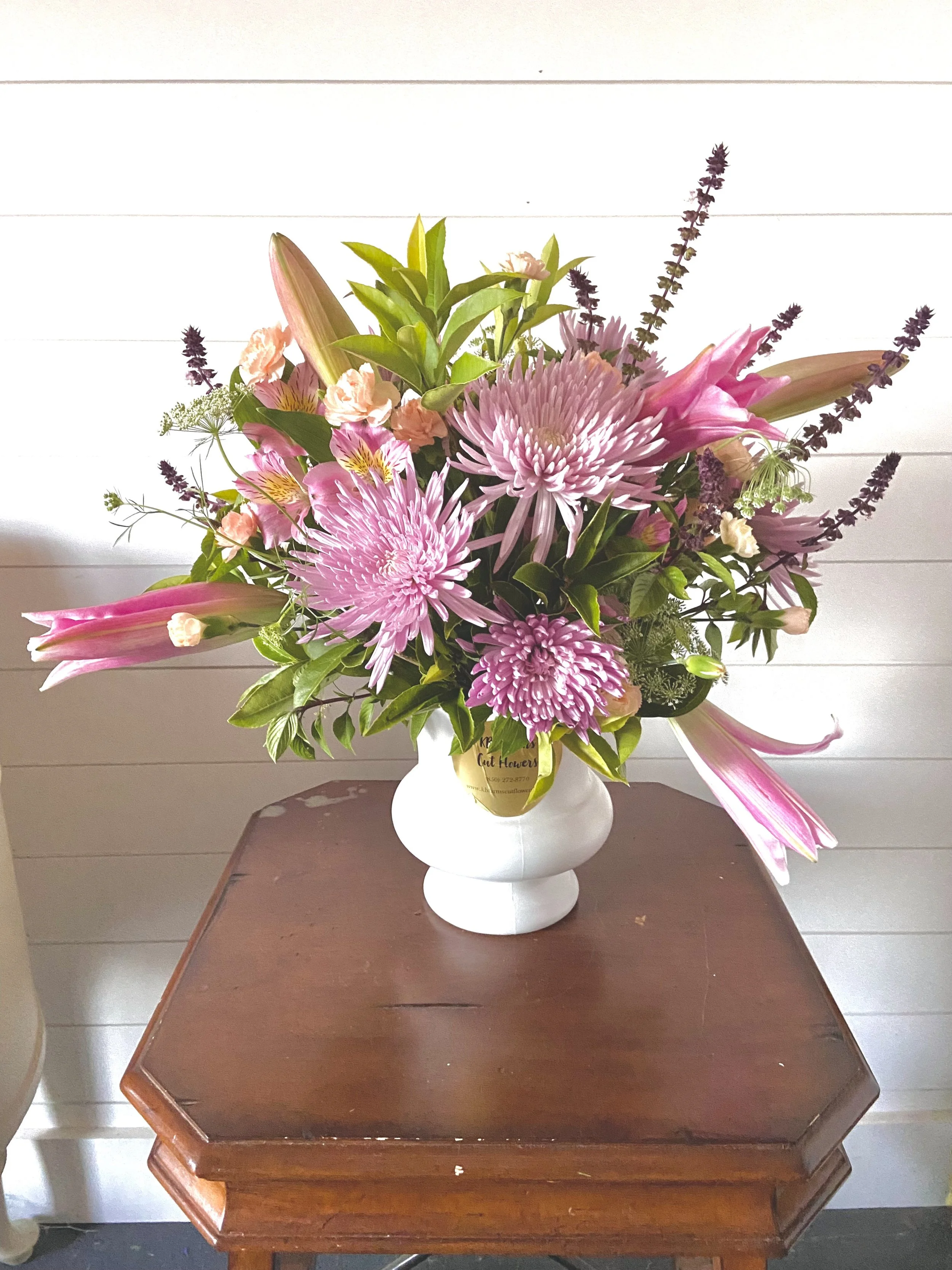 We offer a 6" small or an 8” large peace lily plant delivered in a woven basket as well as 8" medium or 10" large dish gardens with or without fresh cut flowers added. These are the gifts that keep on giving and do not require much care. The price includes delivery within a 20 mile radius from our flower shop. If you are out of that area, there will be an additional delivery fee (normally $10-$15).