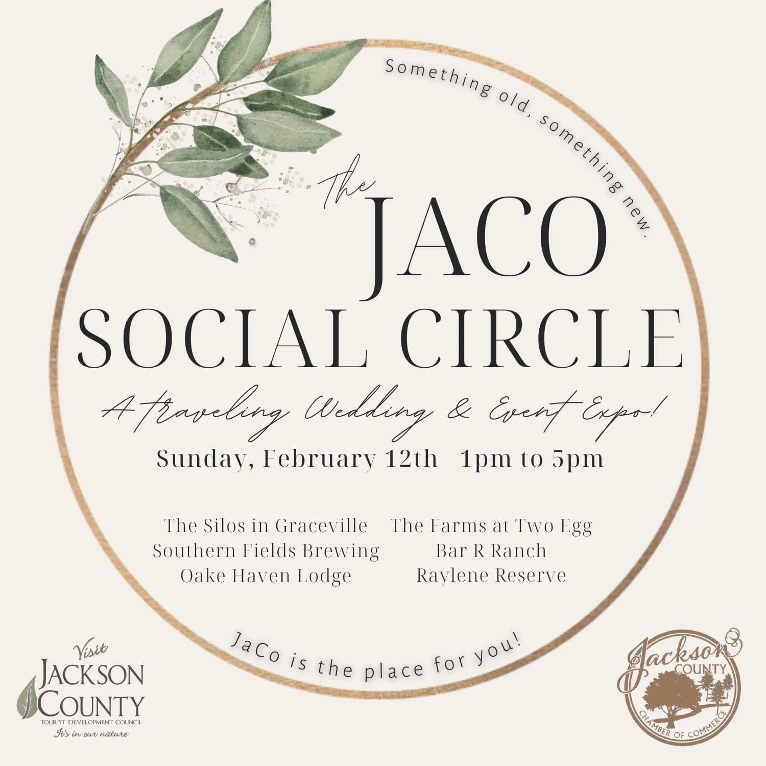 Spend a Sunday afternoon taking a scenic drive around beautiful Jackson County and plan your perfect southern-style event. The JaCo Social Circle is a brand-new traveling Wedding & Event Expo concept brought to you by the Jackson County Chamber of Commerce and Visit Jackson County Fla.