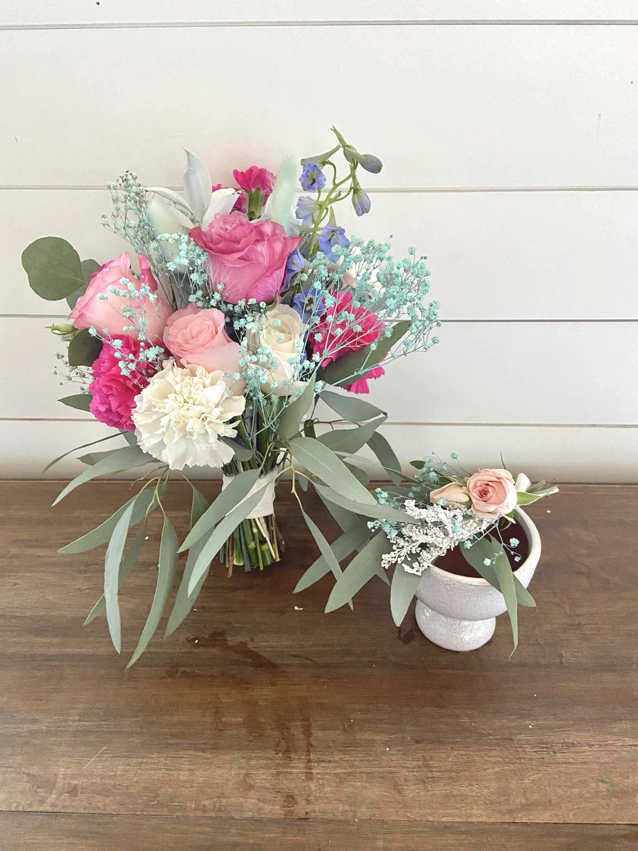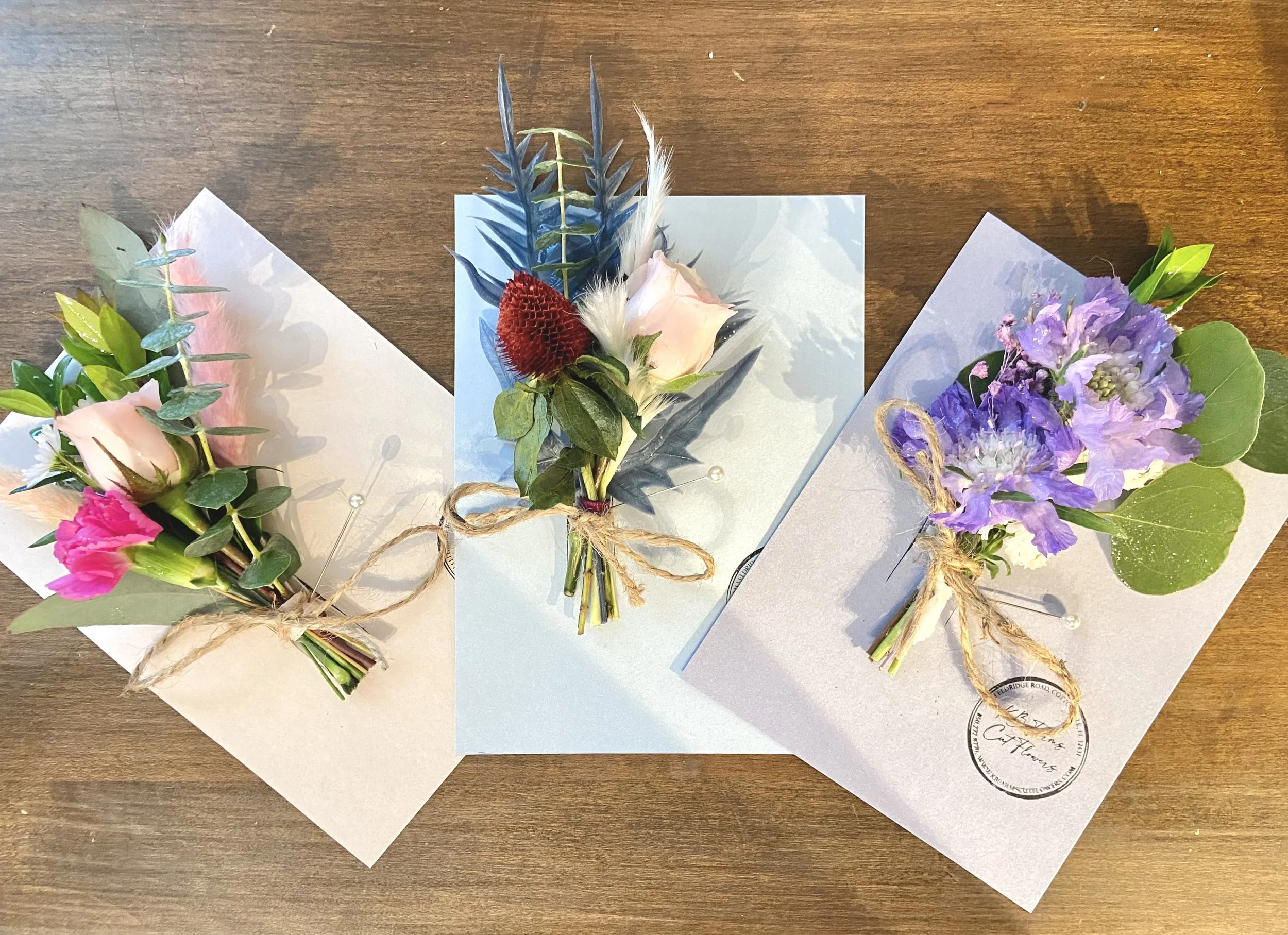 The traditional corsage comes attached to an elastic band. We will design your florals to match your dress. The lower price of this set includes a simple rose, babys breath design with a tinge of greenery and ribbon. Any variation to this traditional corsage is considered an add on. For example, if you don’t want roses and you want ranunculus, it’s an add-on. If you want different fillers other than babys breath, it’s an add-on.