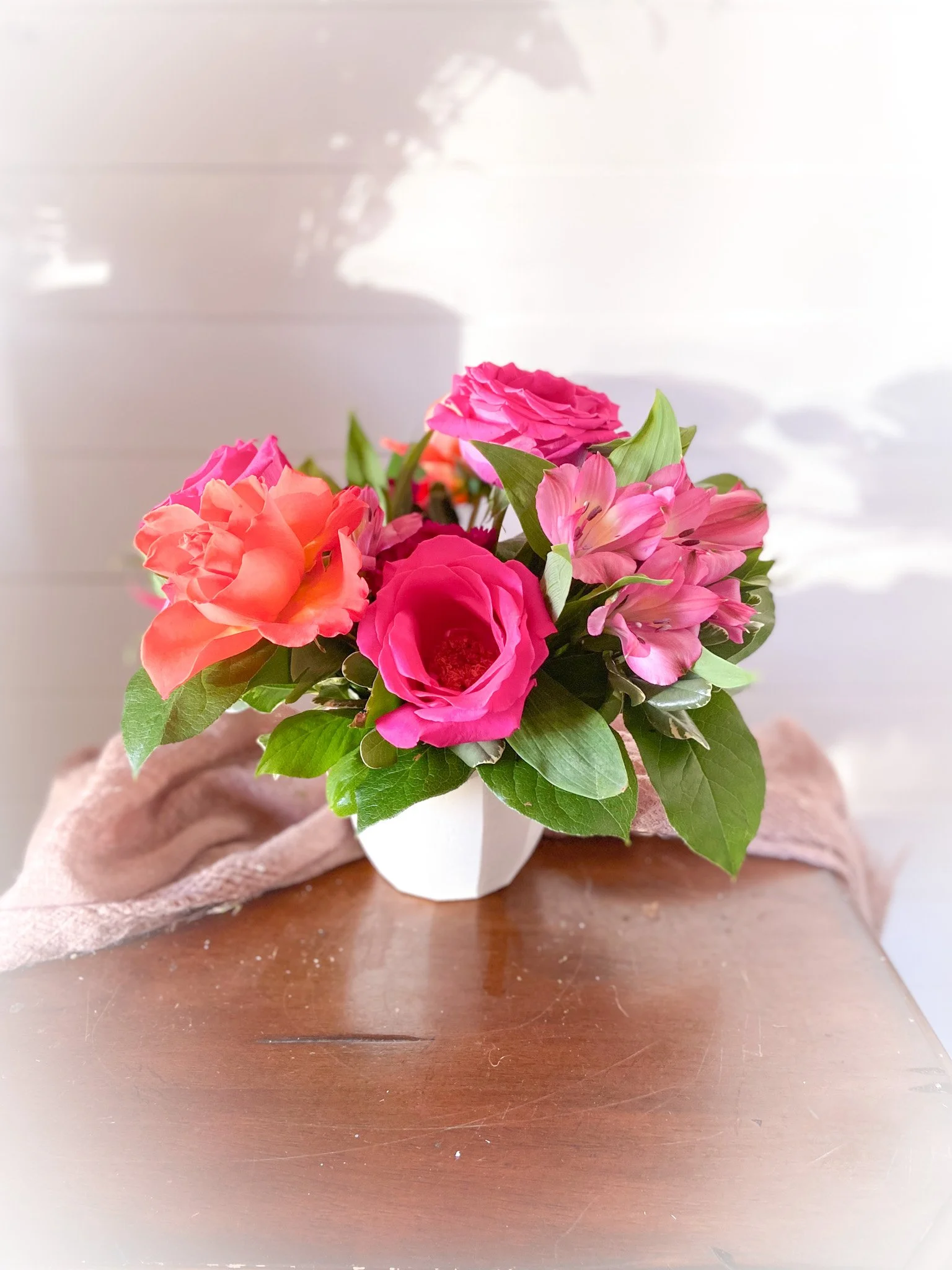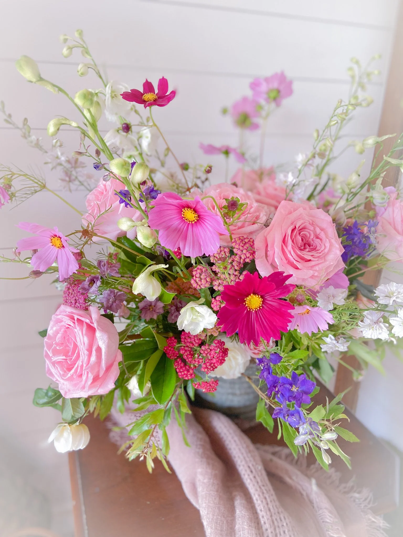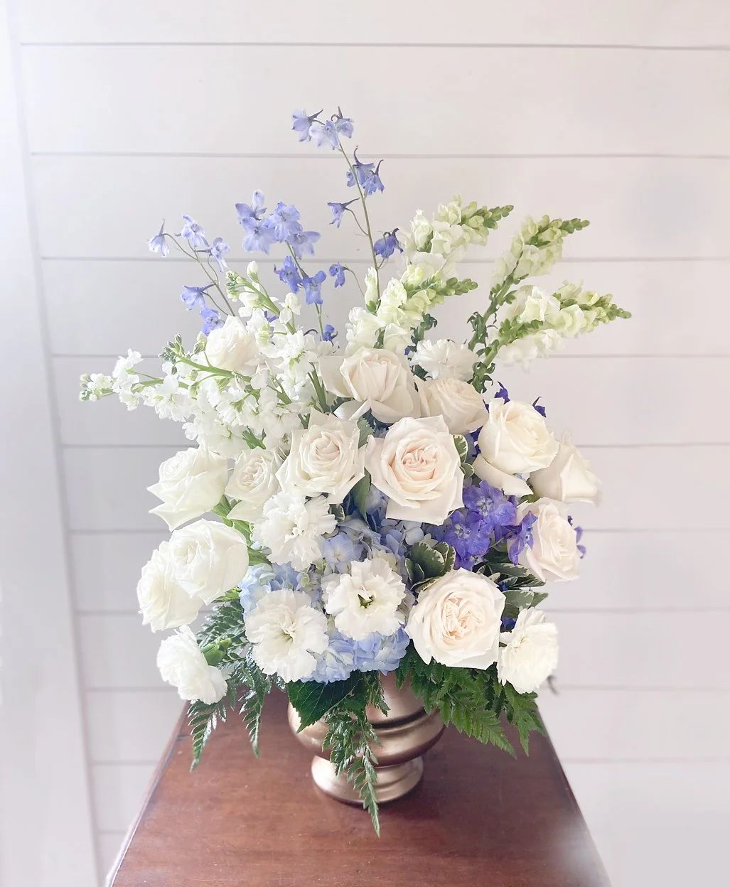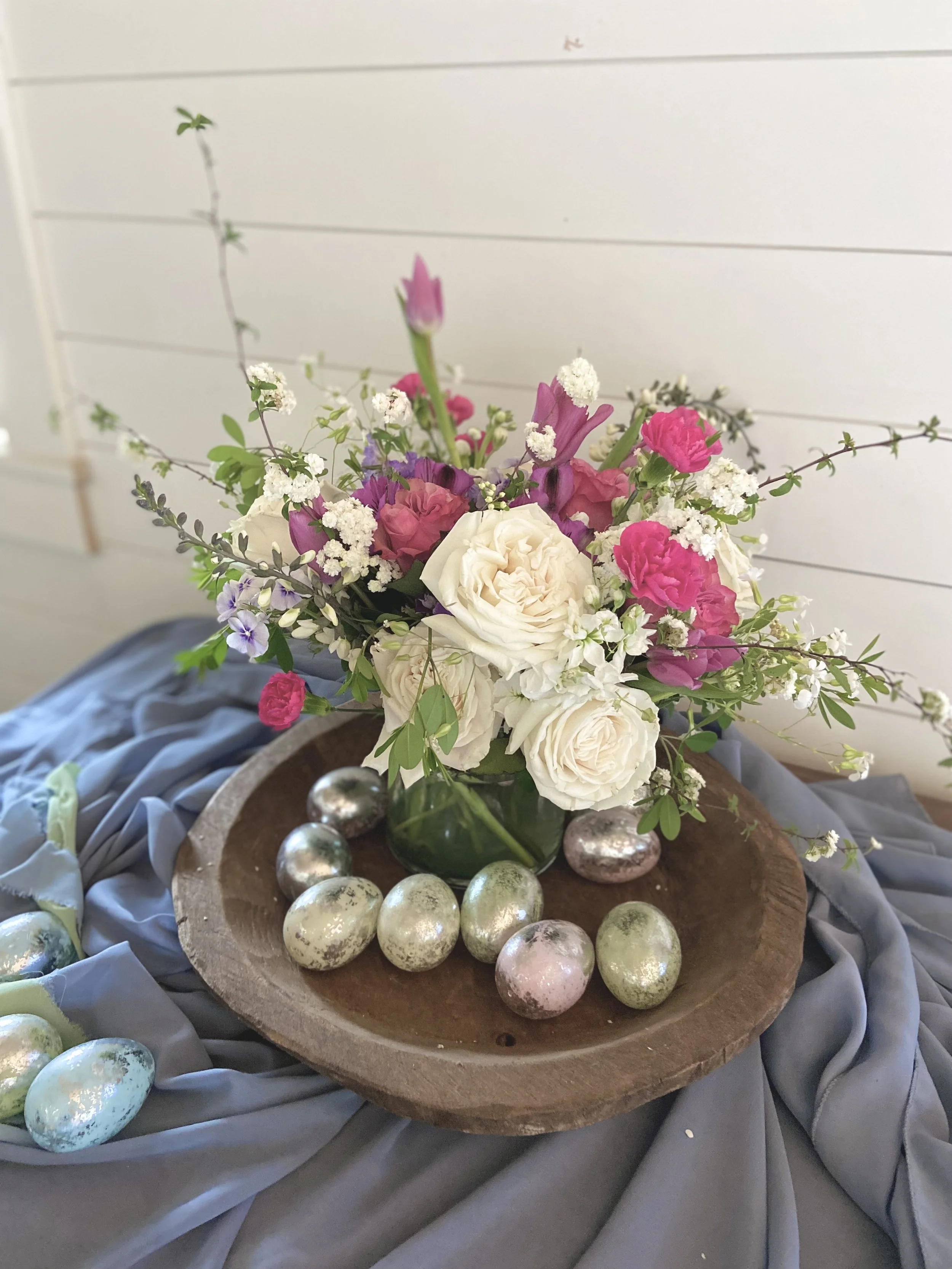 These sprays are our signature sympathy arrangements. Each is unique, because we use our farm florals to add a special feeling of comfort and community. We can also design these sympathy arrangements using only roses, carnations or mums, but we love designing with a garden fresh look. We offer the open heart sprays in sizes 18” or 24”.