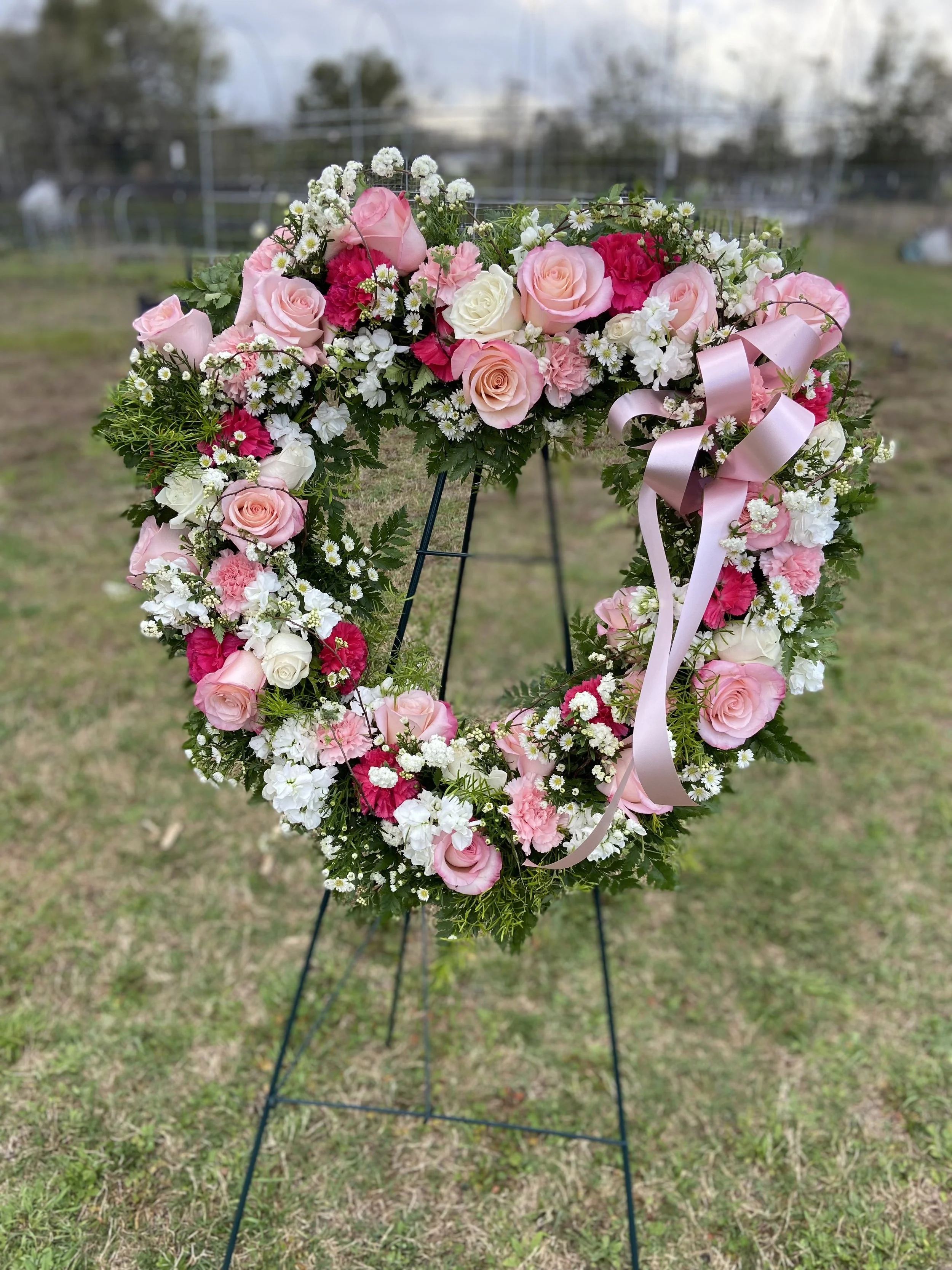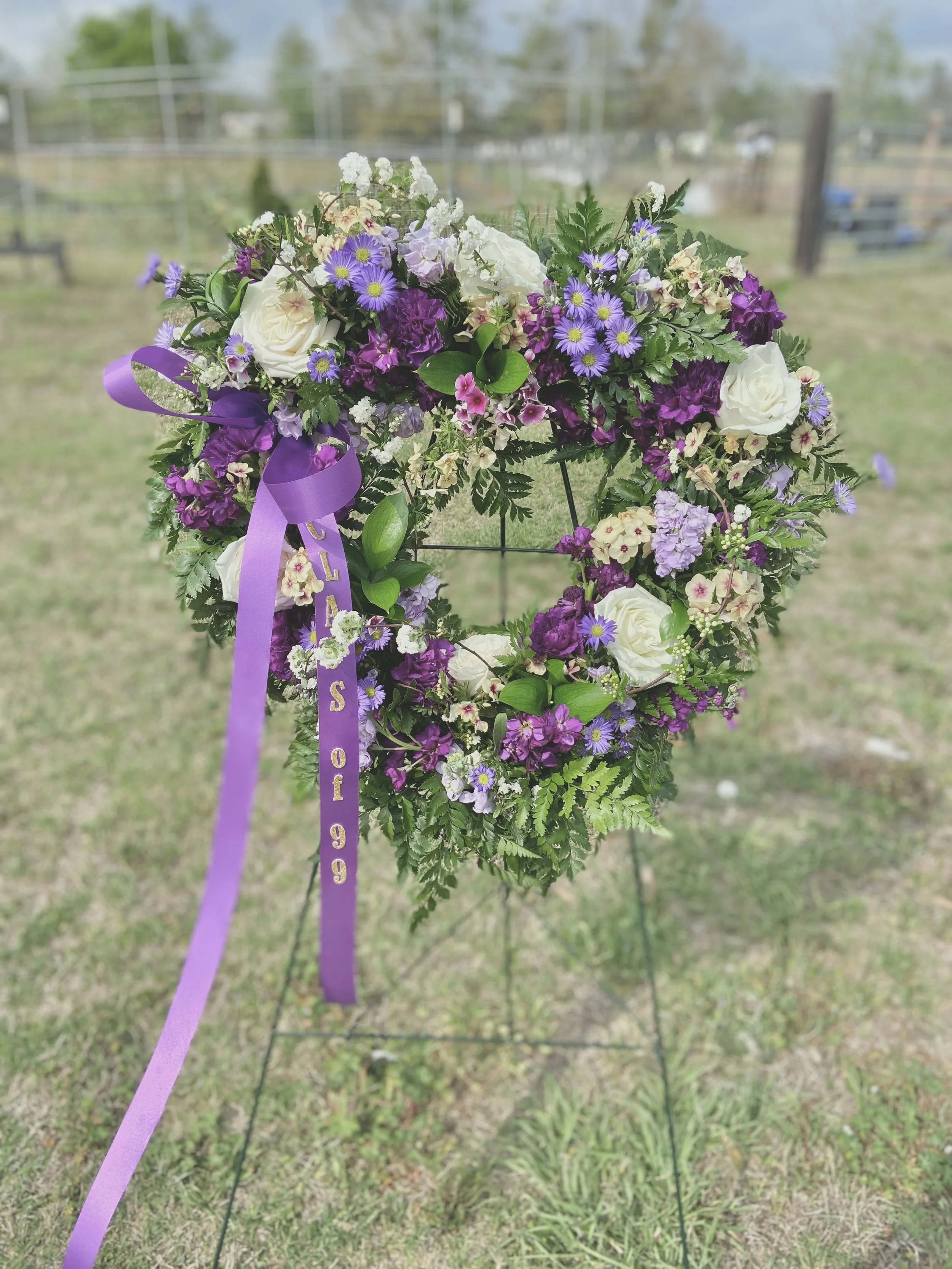 These sprays are an extraordinary way to bid farewell to someone who will remain in your heart. We have several colors and styles to choose from. If you don’t see what you want, or you’d like a different color palette, just let us know in the comments when you check out. Please note that because of supply disruption substitutions may be made, but we will contact you prior to making substitutions.